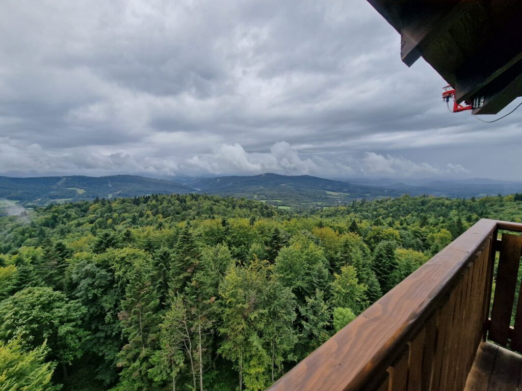 rodzin z dziećmi a po drodze można podziwiać przyrodę i górskie krajobrazy wieża cieszy się dużą popularnością zwłaszcza w sezonie letnim i jesiennym gdy widoczność jest najlepsza to doskonałe miejsce na odpoczynek zdjęcia i kontakt z naturą.