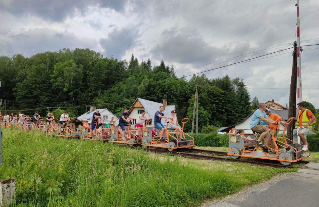 Drezyny rowerowe w Uhercach Mineralnych to unikalna atrakcja turystyczna w Bieszczadach łącząca rekreację z historią pozwalająca na aktywną podróż po nieczynnej linii kolejowej specjalnymi pojazdami napędzanymi siłą mięśni trasa wiedzie przez malownicze tereny Pogórza Bieszczadzkiego mijając pola lasy potoki i niewielkie miejscowości co sprawia że jest to doskonały sposób na spokojne zwiedzanie regionu z zupełnie innej perspektywy drezyny wyposażone są w wygodne siedzenia zadaszenia i systemy bezpieczeństwa dzięki czemu atrakcja nadaje się zarówno dla dorosłych jak i dzieci podczas przejazdu można zatrzymywać się na przygotowanych stacjach odpocząć zrobić zdjęcia lub skorzystać z lokalnych punktów gastronomicznych w sezonie letnim odbywają się również przejazdy tematyczne z animacjami dla najmłodszych oraz wieczorne trasy ze światłami i muzyką to jedna z najchętniej wybieranych rodzinnych atrakcji w regionie łącząca wysiłek fizyczny z wypoczynkiem i zwiedzaniem.